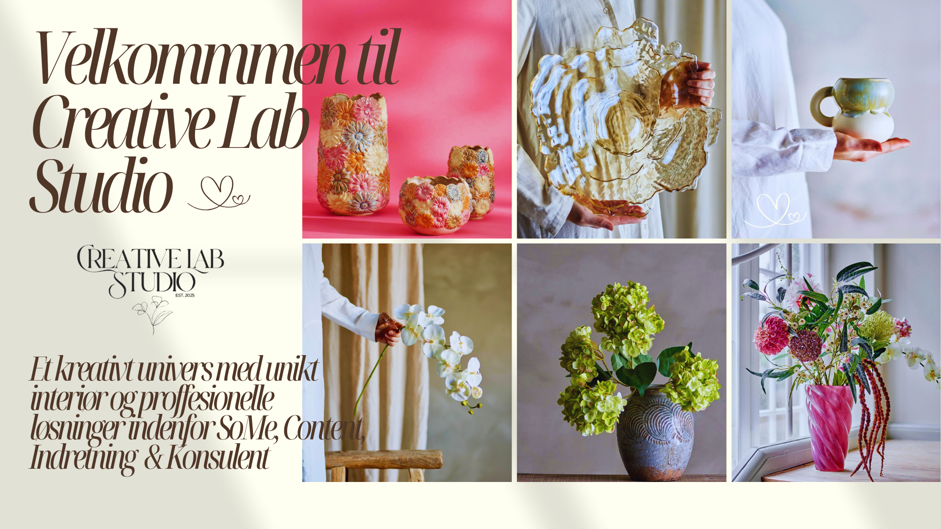 Hos Creative Lab Studio tilbyder vi konsulentbistand, sparring, SoMe-strategi, marketing, interiør, indretning og visuel identitet, skræddersyet til din virksomheds behov. Vores mål er at kombinere strategi og kreativitet, så dit brand ikke bare bliver set – men husket.
